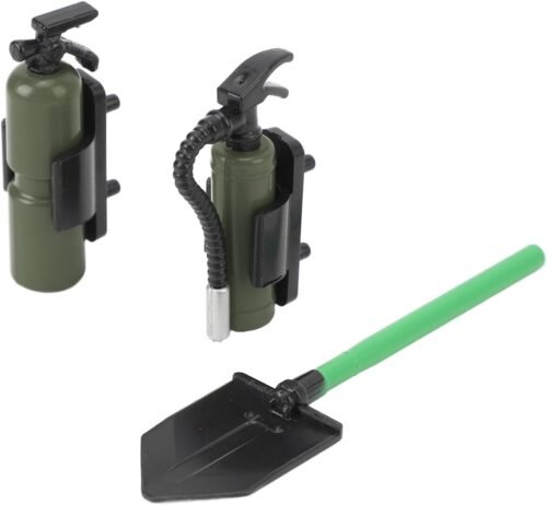 KIT ACCESORIOS CRAWLER ESCALA 1/24 1/12 PALA, EXTINTOR VERDE OLIVA