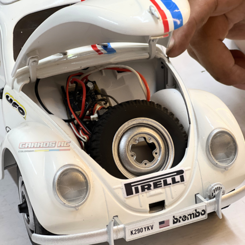 Modelo radio control con carrocería ESCARABAJO VOLKSWAGEN DE PELICULA DE HERBIE. Un modelo con alma de profesional, ensamblado y personalizado en nuestra fabrica. tendrás un modelo único y exclusivo.