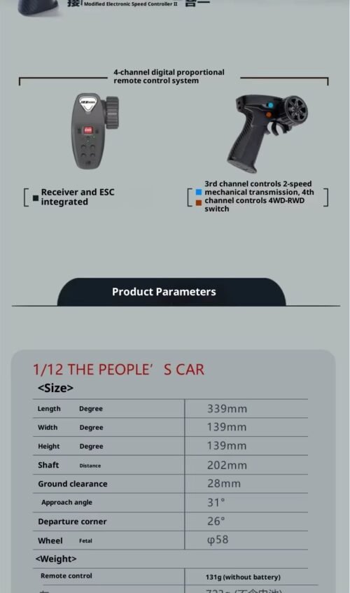 - Que incluye: carro rc, batería recargable de 7.4 v, cargador USB y control remoto.