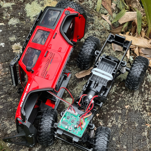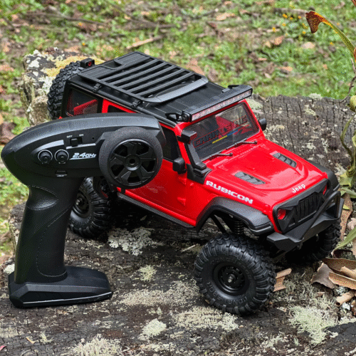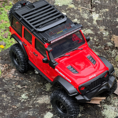 Modelo radio control con carrocería de Jeep Rubicon. Un modelo mini que puedes usar en cualquier lugar y fácil de llevar. Cuenta dirección y aceleración proporcional, resistente a salpicaduras, es 4WD. Cuenta con una distancia del control de aproximadamente 35 metros, motor de escobillas de 280. Incluye una barra LED de iluminación completamente funcional acompañada de luces manejadas directamente desde el control, bombillería funcional tanto adelante como atrás y alineación directa desde el control. Ofrece capacidad de exigencia media-alta.