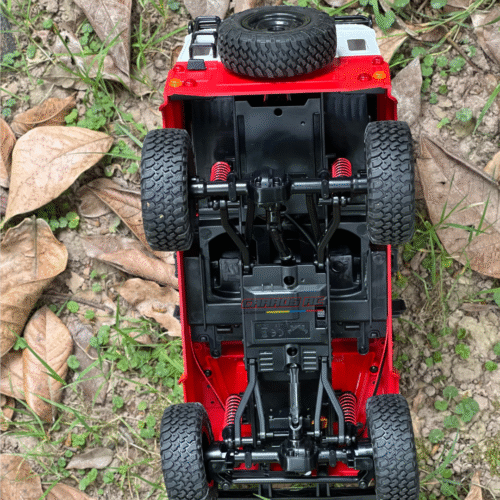Modelo radio control. este modelo cuenta con dos velocidades, electrónica mejorada, luces inteligentes, direccionales a la derecha e izquierda y luz de reversa. Incluye una barra LED de iluminación completamente funcional, dirección y aceleración proporcional, alineación directa desde el control. Ofrece capacidad de exigencia media-alta y cargador usb. detallando externo e interno. llanta de repuesto funcional e incluye todos sus accesorios para armar tales como espejos, parabrisas, chapas etc.