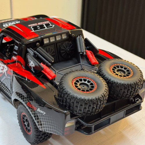 - Modelo radio control UDR Un modelo con alma de profesional ya que cuenta con un motor brushless, piñonería metálica , suspensión mejorable y eje rígido. Incluye una barra LED de iluminación completamente funcional acompañada de luces, alineación directa desde el control. Ofrece capacidad de exigencia media-alta.