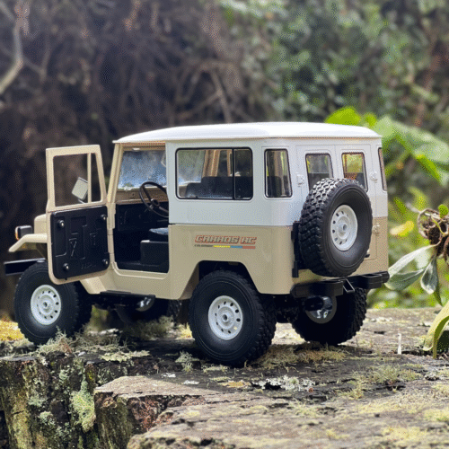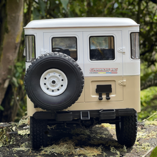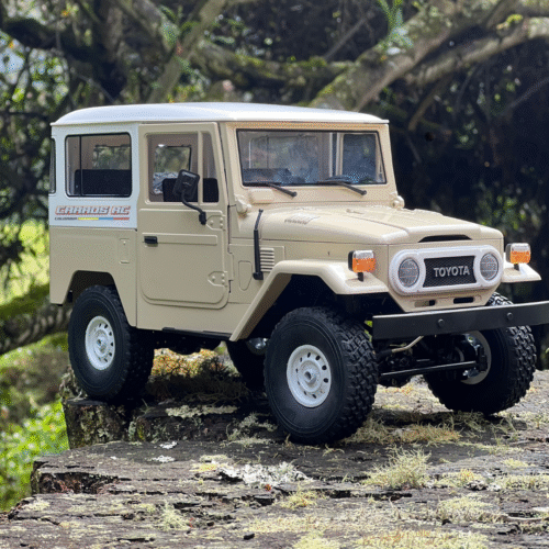 Modelo radio control con carrocería TOYOTA FJ40, cuenta con un motor de escobillas de 540 mm, piñonería metálica en sus troques (corona y speed), suspensión mejorable y eje rígido, luces manejadas directamente desde el control, bombillería funcional, dirección y aceleración proporcional, alineación directa desde el control. Ofrece capacidad de exigencia media-alta.